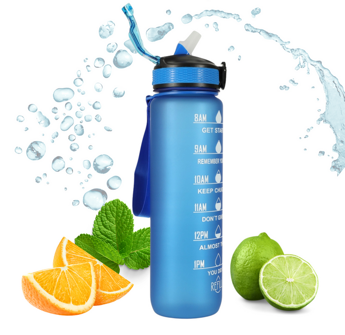 Butelka na wodę bidon ze słomką uchwytem miarką motywacyjną na siłownię 1l zielona