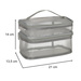 - Szara kosmetyczka podróżna z siateczki. Posiada dwie przegrody zapinane na zamek błyskawiczny. Wyposażona w rączkę do łatwego przenoszenia. Tworzywo: poliester. Wymiary: 21 cm x 13,5 cm x 14 cm.
