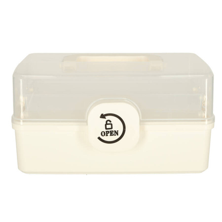 Przezroczyste wieczko ułatwia dostrzeżenie poszukiwanego medykamentu jeszcze bez otwierania domowej apteczki.